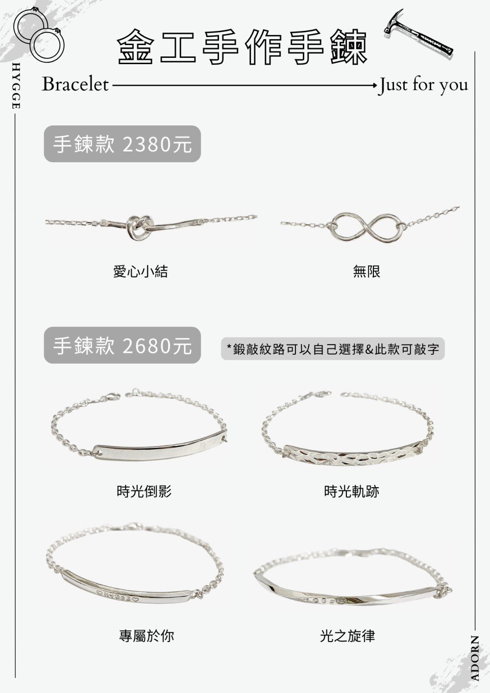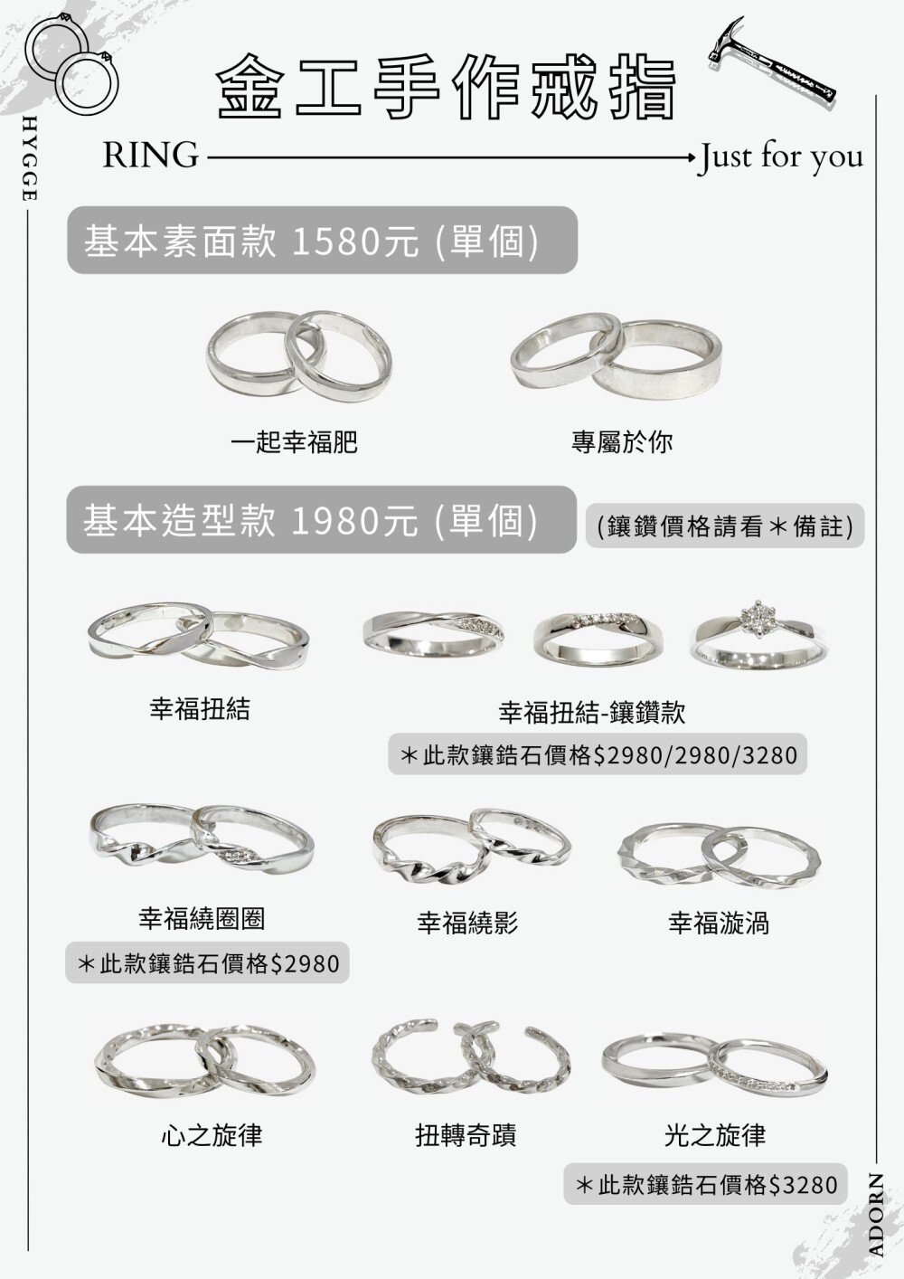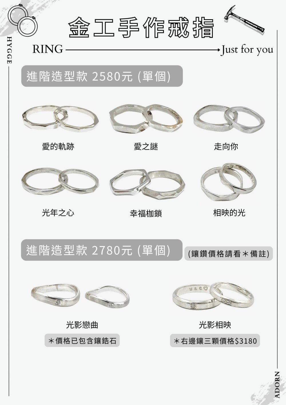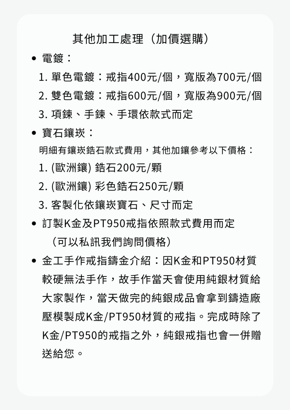 ・電鍍:戒指 TWD 450 起 / 手環依款式而定。