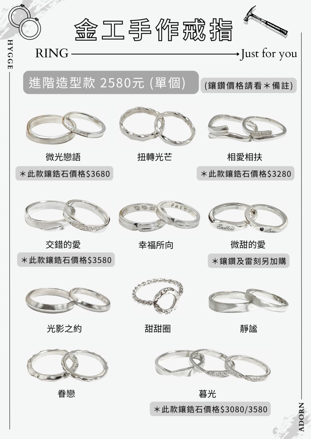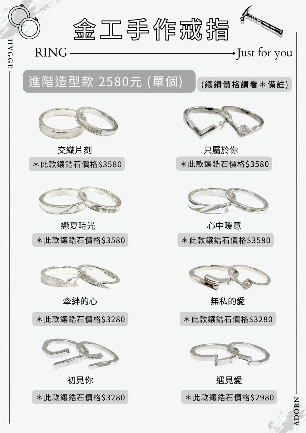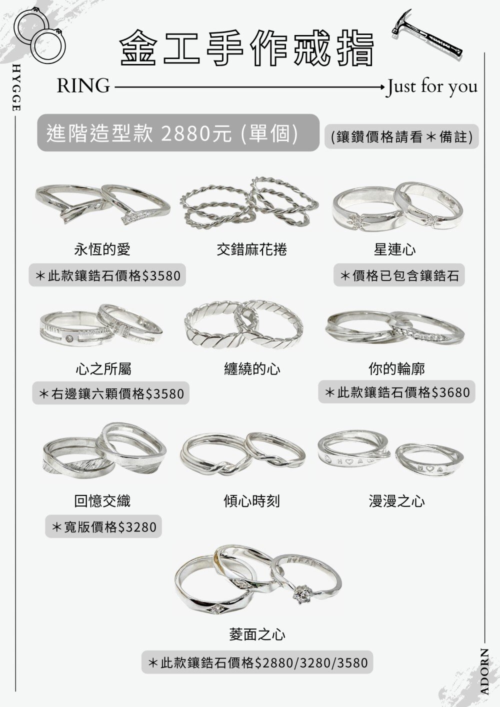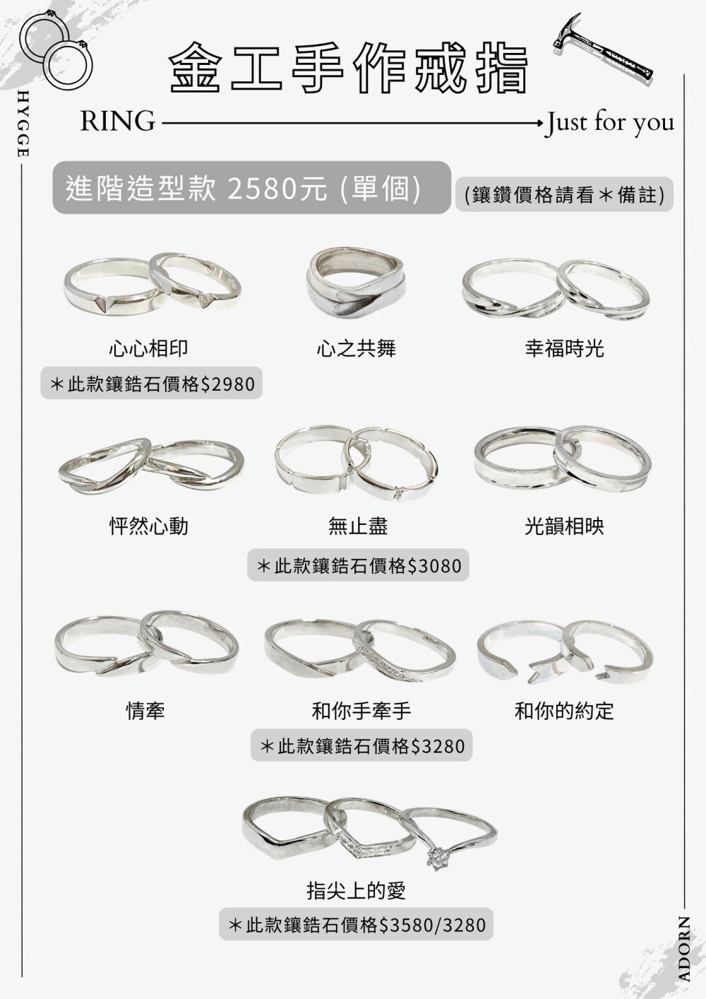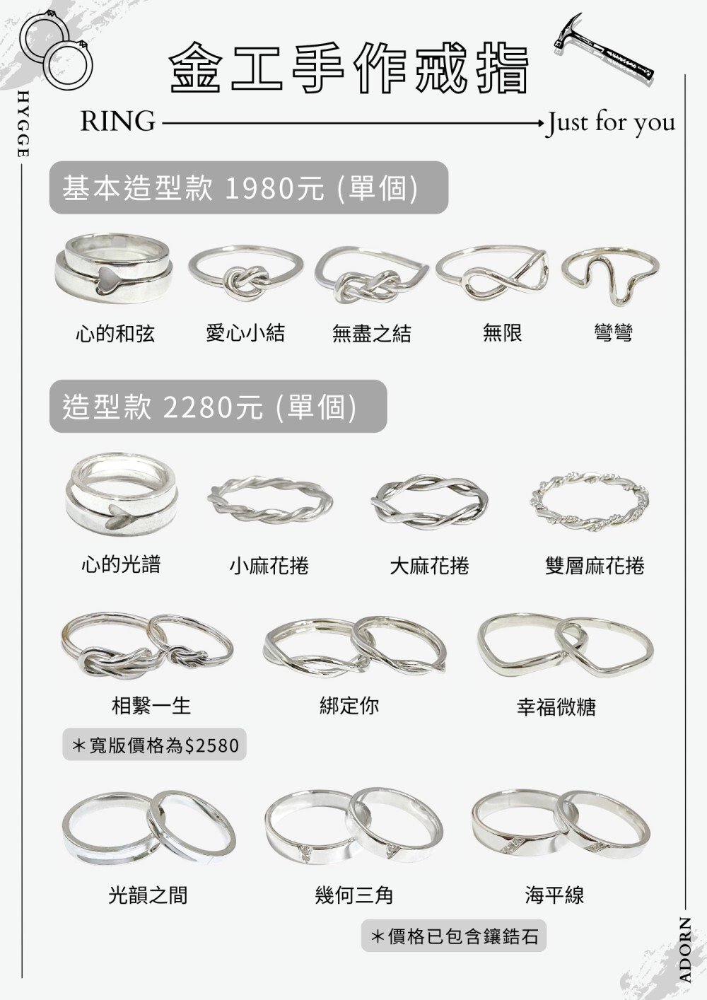 ・電鍍:戒指 TWD 450 起 / 手環依款式而定。