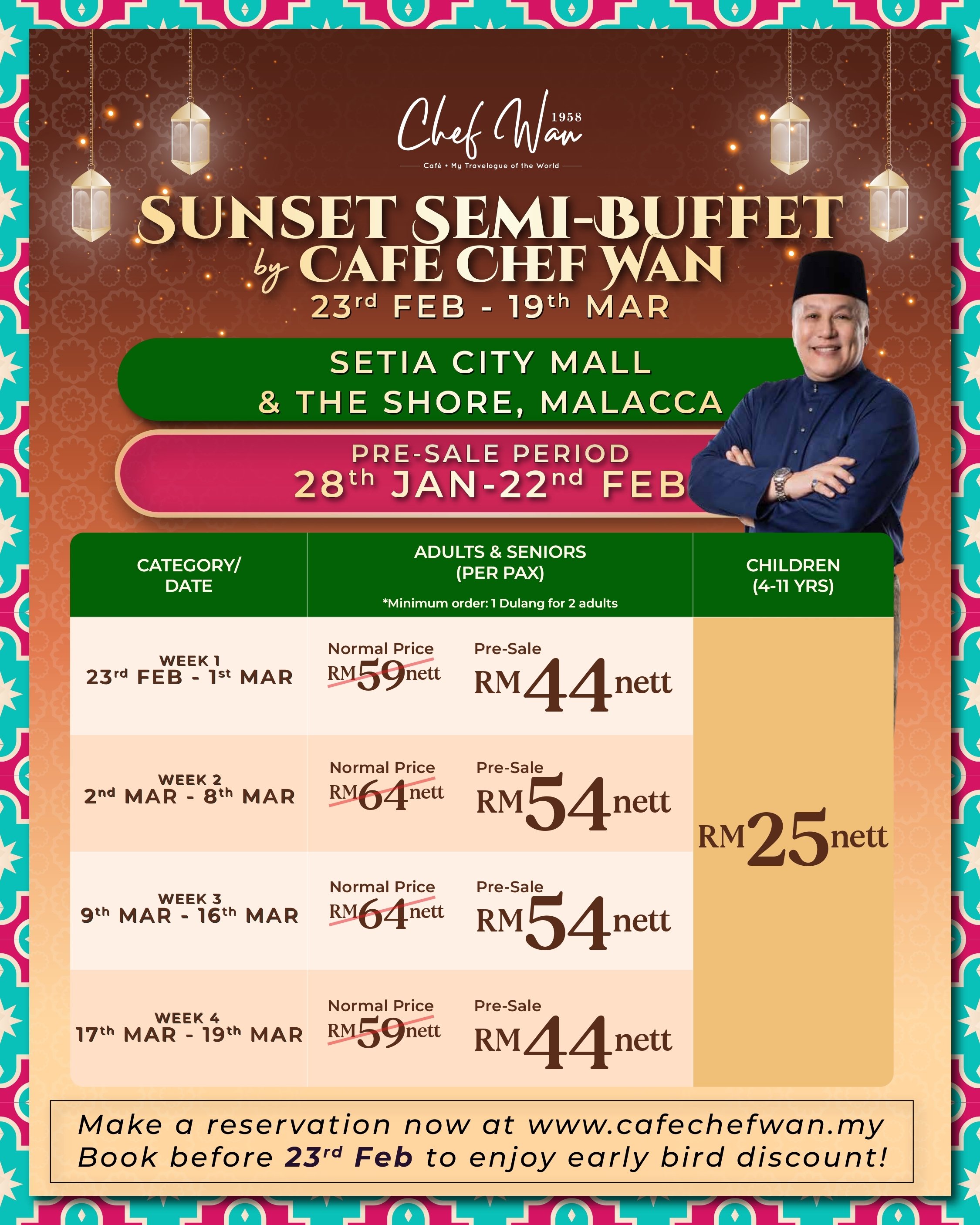 2/3 - 16/3 | Sunset Semi-Buffet by Cafe Chef Wan | Adult & Senior (Age 60 & Above)