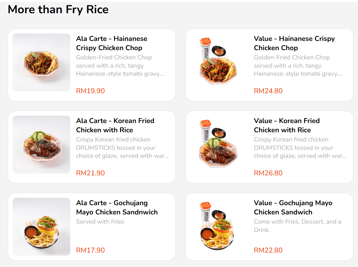 - Pictures shown are for illustrations purpose only. Dishes are subject to the daily menu provided.